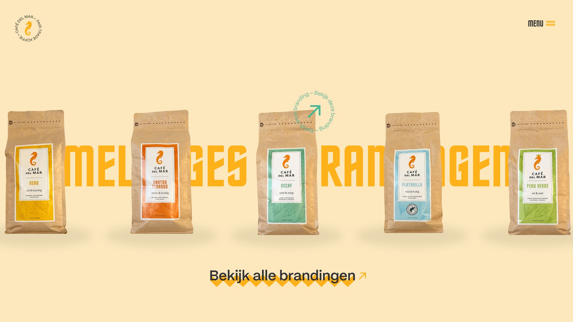 Zie je al die bewegende effecten en elementen? Achter die schijnbaar moeiteloze interacties schuilt een hoop code. Onze developers hebben alles uit de kast gehaald voor dat gewenste ‘wauw’-effect. En met succes, al zeggen we het zelf. Bij het betreden van de website wacht je meteen een pagina-animatie en daarna zit de site boordevol verrassingen. Van unieke kleurtransities tot een productgalerij die je niet loslaat. Alles is ontworpen om je onder te dompelen in de (h)eerlijke wereld van Café del Mar. Dat kunnen wij je vertellen, maar beter surf je zelf even naar de pagina.