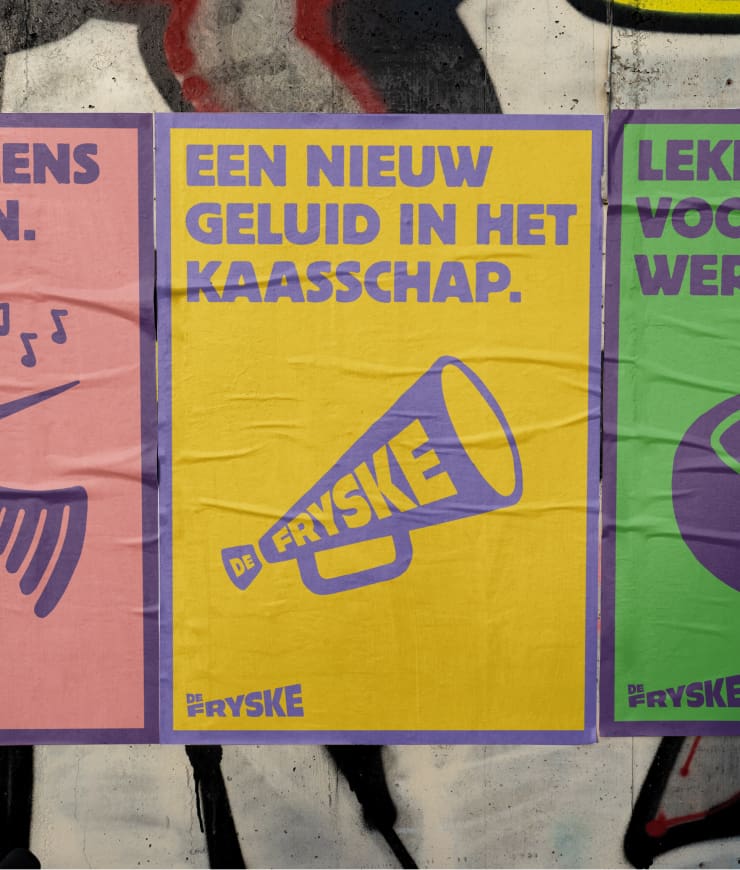 Kom je de Fryske tegen in een speciaalzaak of versschap? Dan weet je: dit is een club met een boodschap. De teksten groot, de kleuren smakelijk, de boodschap onherroepelijk. Net als de Fryske vlogen wij het deze keer ook net even anders aan. Het kleurenpalet, dat meestal uit drie of vier kleuren bestaat, is nu oneindig. En dus kan er ook oneindig gevarieerd worden. De typografie is net zo stevig als de boodschap. Het woordmerk positief activistisch én gekanteld, zodat het net als de Fryske met alle benen op de grond staat. Een vreemde eend in de bijt? Misschien. Match made in heaven dus.