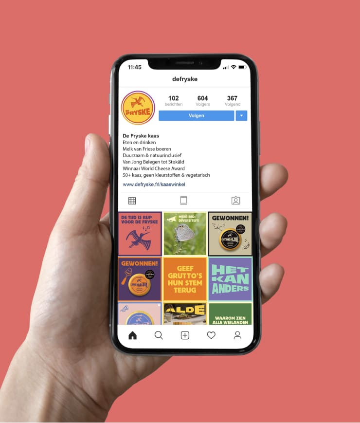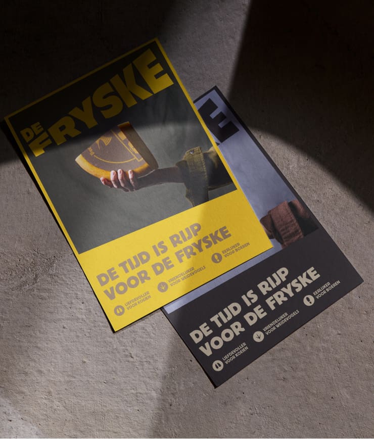 De Fryske zag iets wat anderen nog niet door hadden: het zuivelsysteem moet veranderen. En al werd het niet altijd gehoord, de Fryske bleef geluid maken. Vol wilskracht, met de kop omhoog. Tot de wereld haar oren opende. Nu is het zover: wat de Fryske al jaren roept, staat op alle voorpagina’s. De sector snapt dat er structureel iets moet veranderen, en de consument snapt het ook. Het is tijd om ons landschap te beschermen. De tijd is rijp voor meer biodiversiteit, beter dierenwelzijn, minder CO2. De tijd is rijp voor de Fryske. En dus klopten de koppige kaasmakers bij Junction aan. Van merkpositionering tot visuele identiteit, webdesign en copy: onze specialisten beten zich vast in de Fryske én haar (lekkere!) kazen.