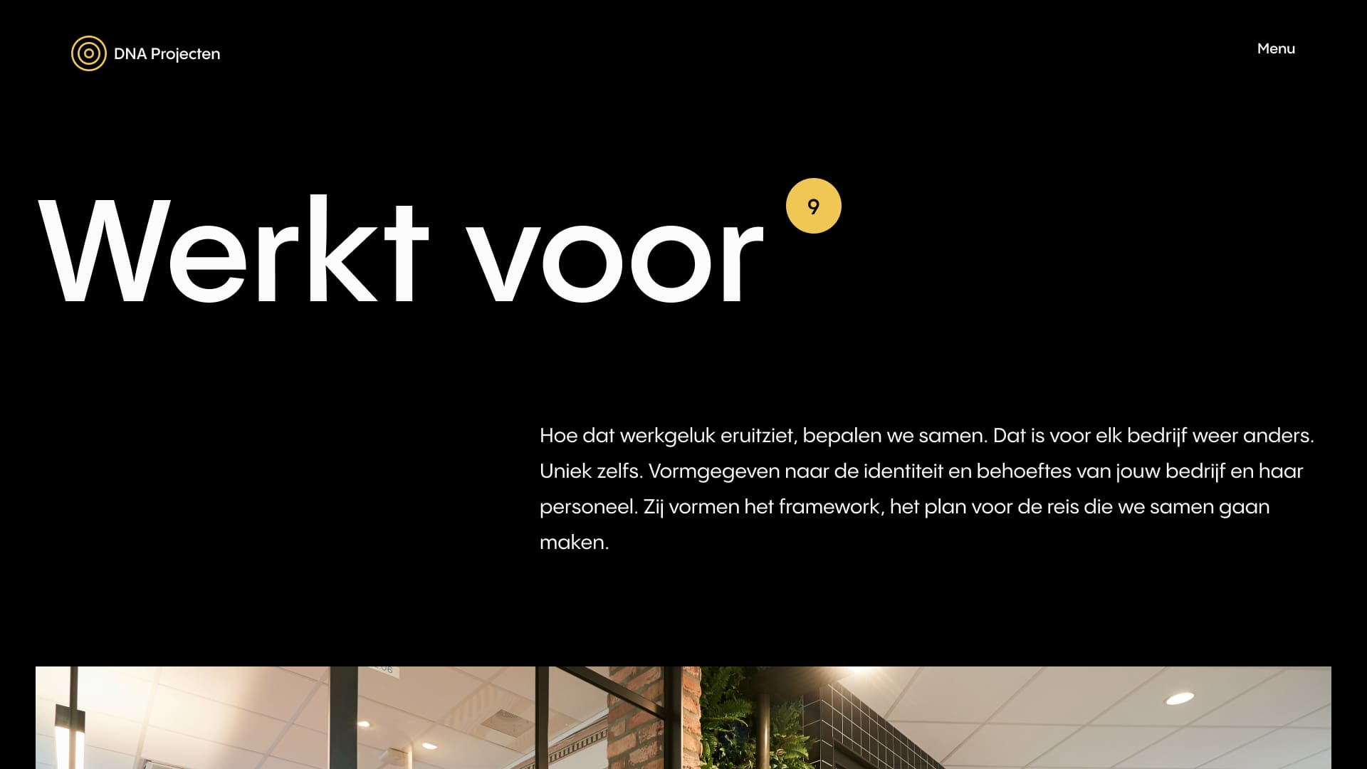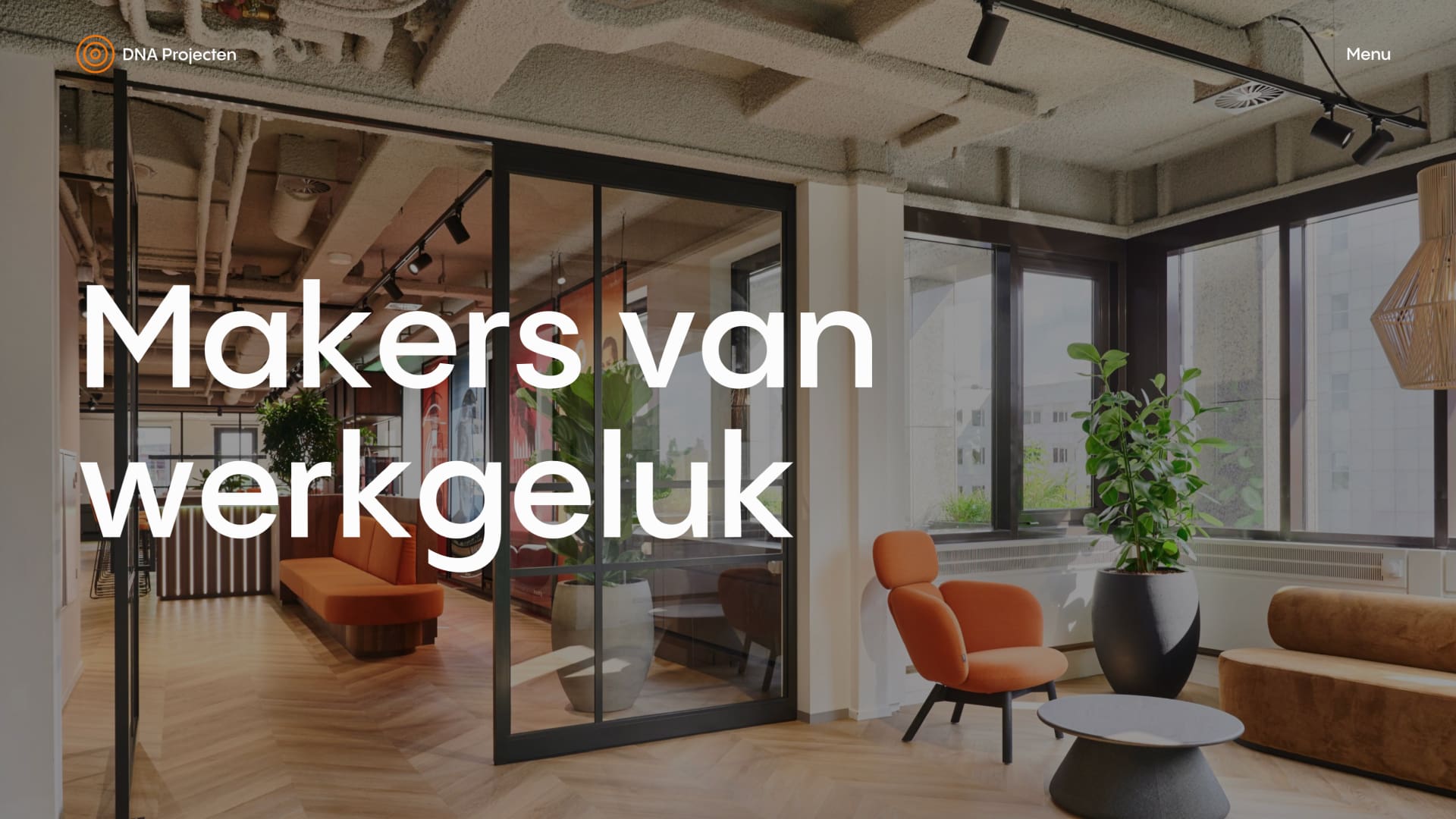 We begonnen met een merk- en strategiesessie, waarmee we de basis legden voor DNA’s nieuwe merkidentiteit, communicatiepositionering en huisstijl. We bedachten een pay-off: ‘Makers van werkgeluk’. De perfecte conclusie op het manifest: de herijking van het de visie en het gedachtegoed van DNA. Daarin lees je dat een kantoor niet zomaar een werkplek moet zijn, maar een verlengstuk van het leven. Altijd kennisgedreven en boven verwachting vormgegeven. Altijd met een samenwerking waarbij je als klant altijd van a tot z wordt ontzorgd. Het vormde het fundament van de website die ook nog eens dik in de prijzen viel.