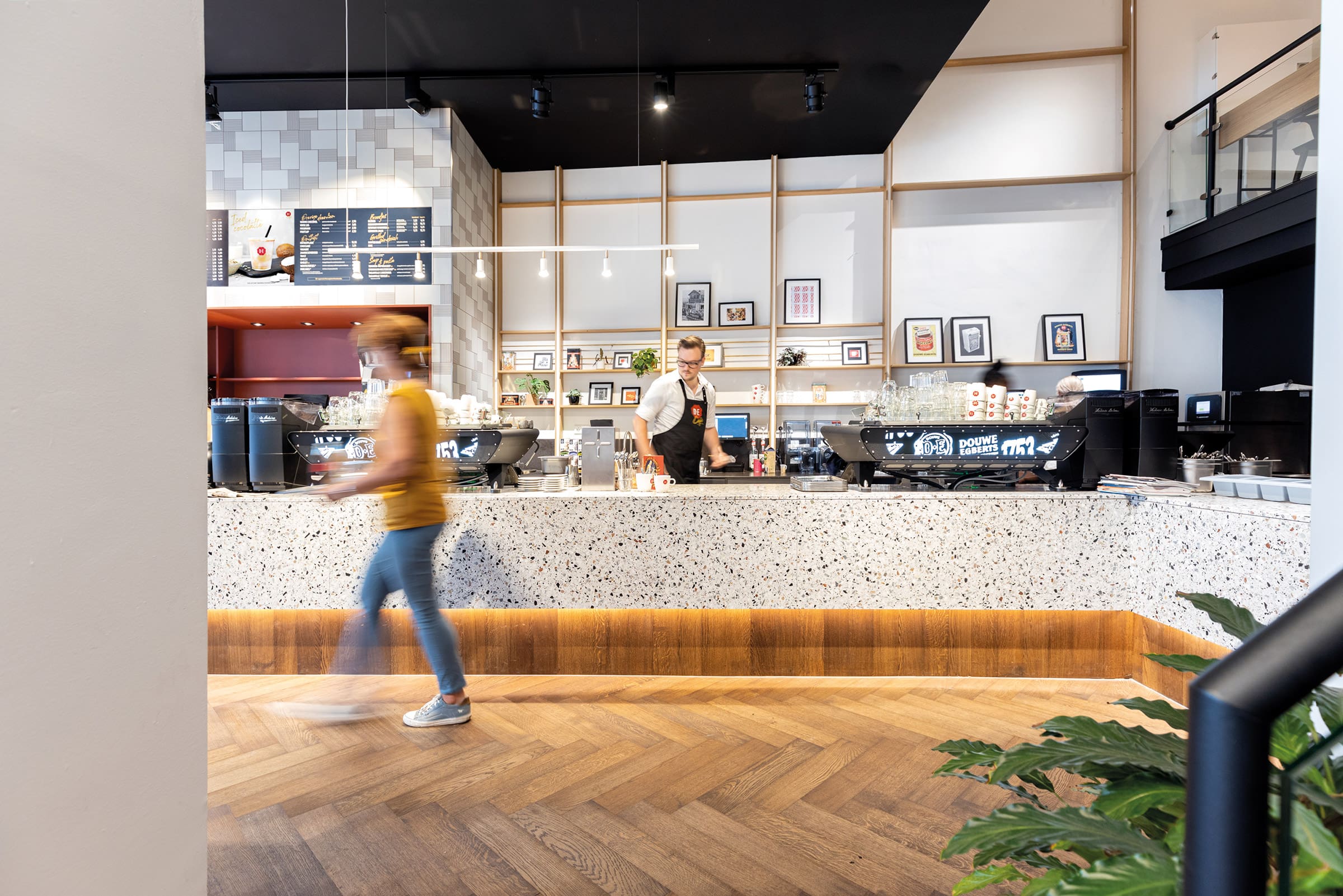 De rijke historie (van meer dan 265 jaar!) vormde een bron van inspiratie voor de brand update van Douwe Egberts Café. In zowel het interieur als de visuele identiteit komt het authentieke karakter tot leven door verschillende elementen uit het archief van DE nieuw leven in te blazen. Het expressieve handgeschreven font en de combinatie van donkergrijze met gouden kleuren weerspiegelen de warme, toegankelijke sfeer van de cafés en de gastvrijheid van de barista’s. Bovendien sluiten de vormen en kleuren naadloos aan bij de premium uitstraling van Douwe Egberts.