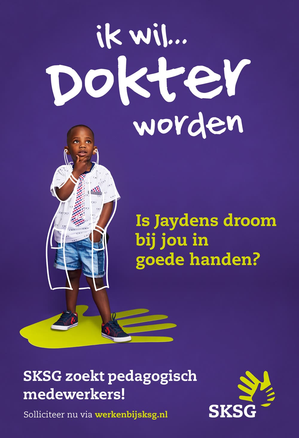 We besloten sollicitanten aan te spreken op wat zij aan deze dromen kunnen bijdragen. Dat leverde een uniek creatief concept op, met de kinderen van SKSG in de hoofdrol. Zo weten toekomstige medewerkers direct waar ze het voor doen.