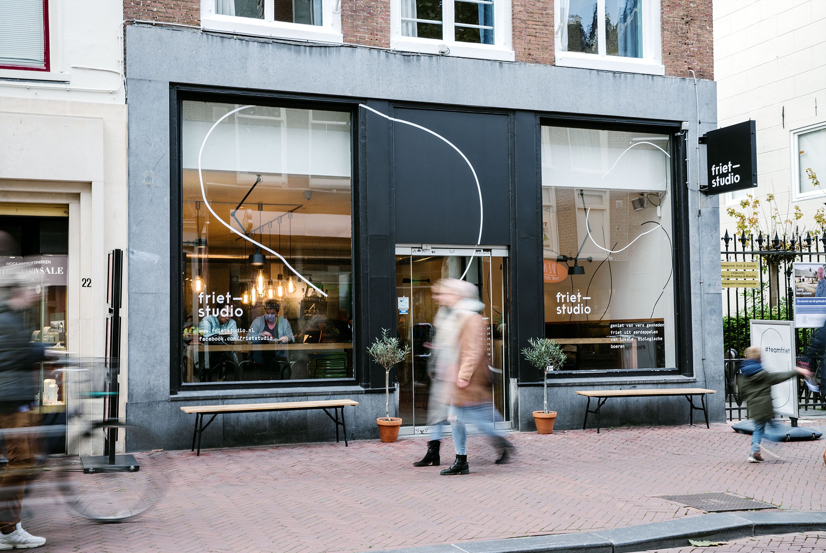 Bij het werkwoord ‘snacken’ denk je al misschien aan die keer dat je met het schaamrood op de kaken liefdeloos dat kleffe broodje kroket zat weg te happen bij de snackbar op de hoek. Frietstudio greep die definitie bij de lurven en maakte er haute friture-ervaring van. Eigenaar Murphy Lont klopte bij ons aan voor een visuele identiteit met dezelfde ondertoon als zijn product: eenvoud met smaak.