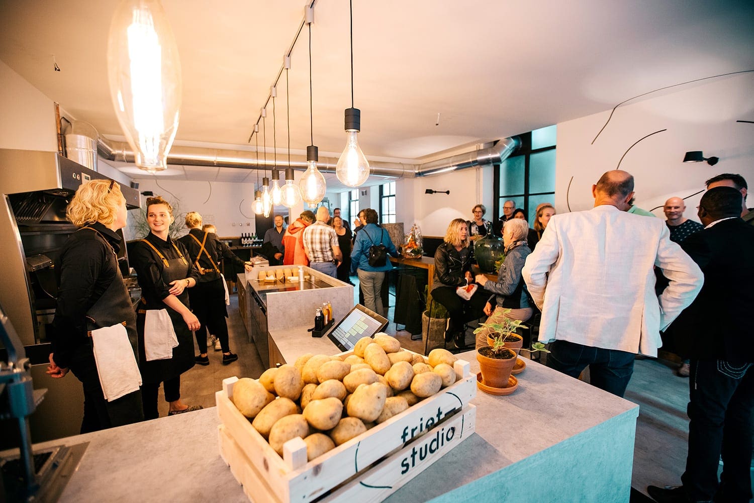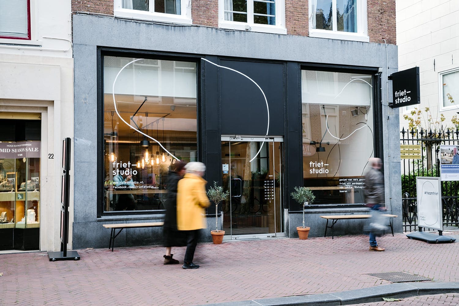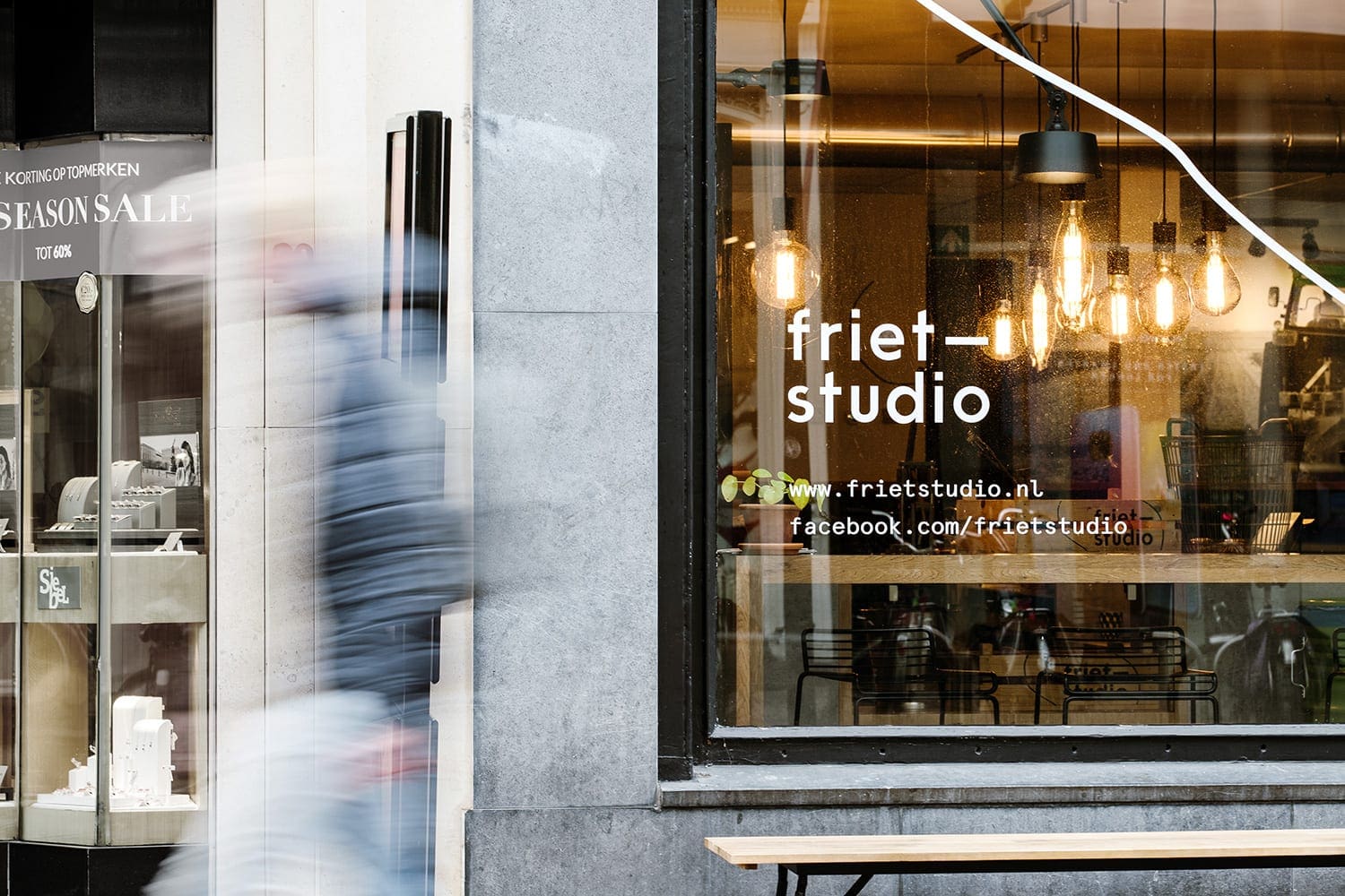 Bij het werkwoord ‘snacken’ denk je al misschien aan die keer dat je met het schaamrood op de kaken liefdeloos dat kleffe broodje kroket zat weg te happen bij de snackbar op de hoek. Frietstudio greep die definitie bij de lurven en maakte er haute friture-ervaring van. Eigenaar Murphy Lont klopte bij ons aan voor een visuele identiteit met dezelfde ondertoon als zijn product: eenvoud met smaak.