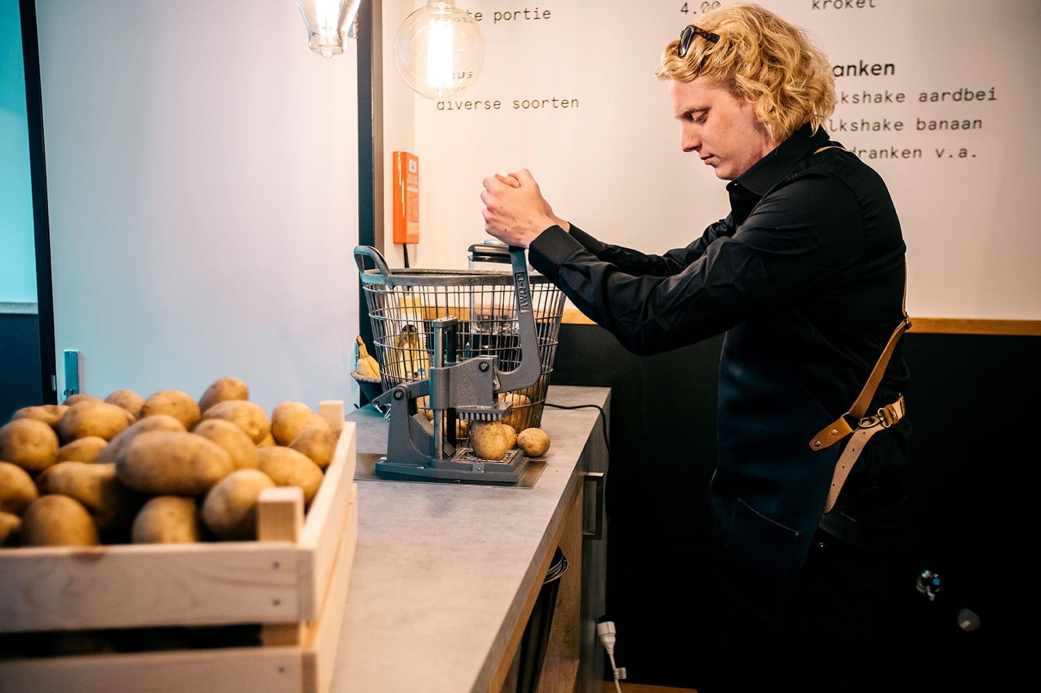 Met een lekkere naam en een paar patattovenaars achter de frituur ben je al een heel eind, maar het oog wil ook wat! In ons ontwerp hielden we het simpel. Typografie en eenvoudige vormen voeren de boventoon, gecombineerd met natuurlijke materialen in het interieur. Als je food alleen fast is omdat het niet zo ver hoeft te reizen, moet je uitstraling daarbij passen.
