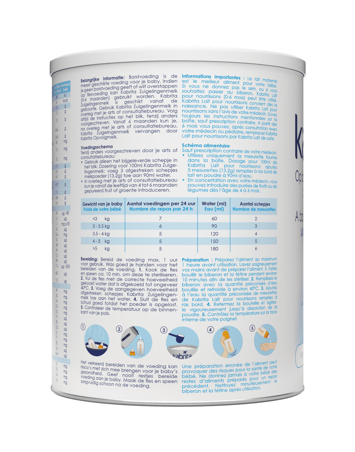 Vanuit Ausnutria kwam de vraag om het vertrouwde gezicht van Kabrita in alle landen gelijk te krijgen. En dat is meer dan alleen een blik (ont)werpen. De landspecifieke wet- en regelgeving heeft namelijk direct invloed op het design van de verpakkingen. De opmaak en het wijzigen van de verpakkingen vraagt om nauwkeurigheid en een feilloos eindresultaat. Gelukkig weet ons packaging-team daar raad mee!