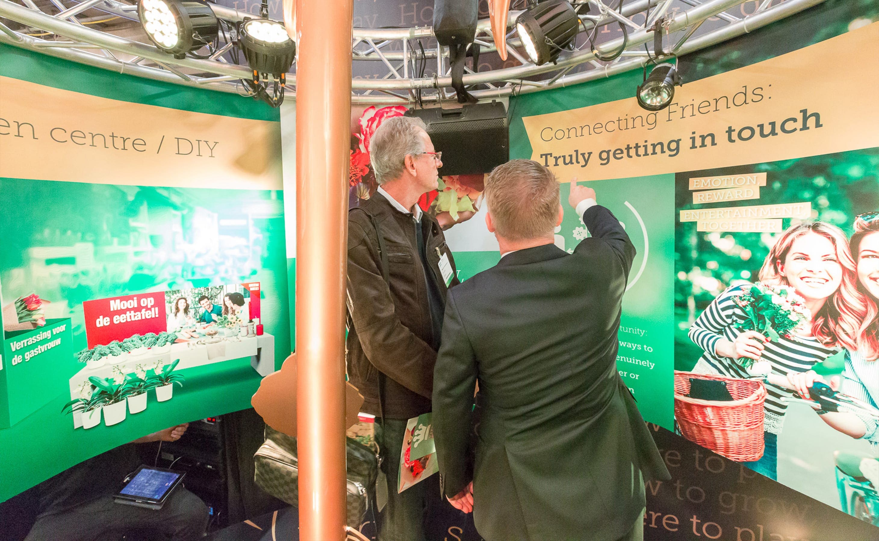Met de methodiek van groeiplatformen, strategische thema’s voor groeikansen in de markt, was Royal Flora Holland op ons aanraden al een tijd terug aan de slag gegaan. Tijdens de Trade Fair in Aalsmeer was het tijd om het woord te verspreiden. Een probleem: het is niet echt een sexy onderwerp op een beurs vol bloemen en planten. Tijd om de bloemetjes buiten te zetten met een interactieve beursstand!
