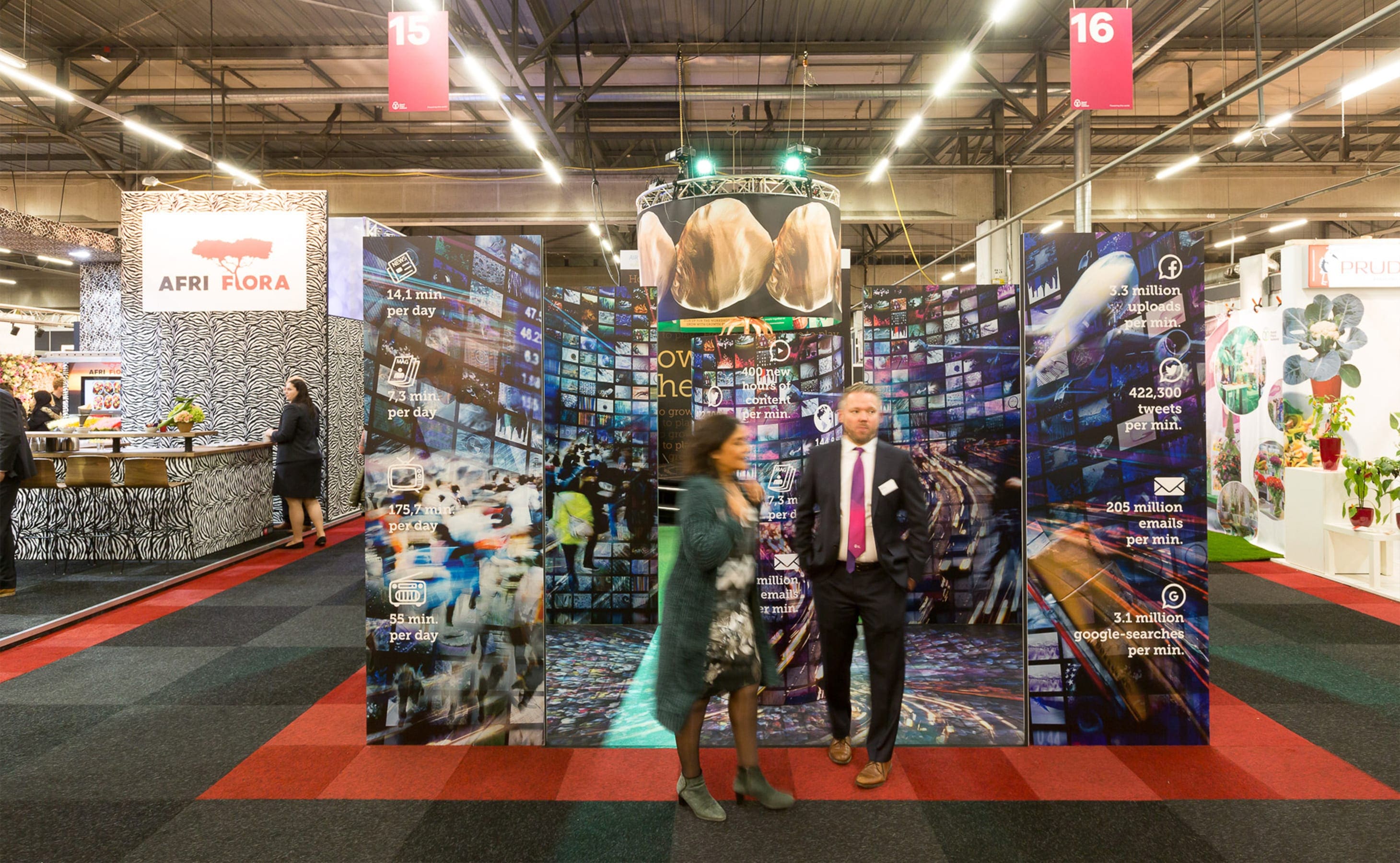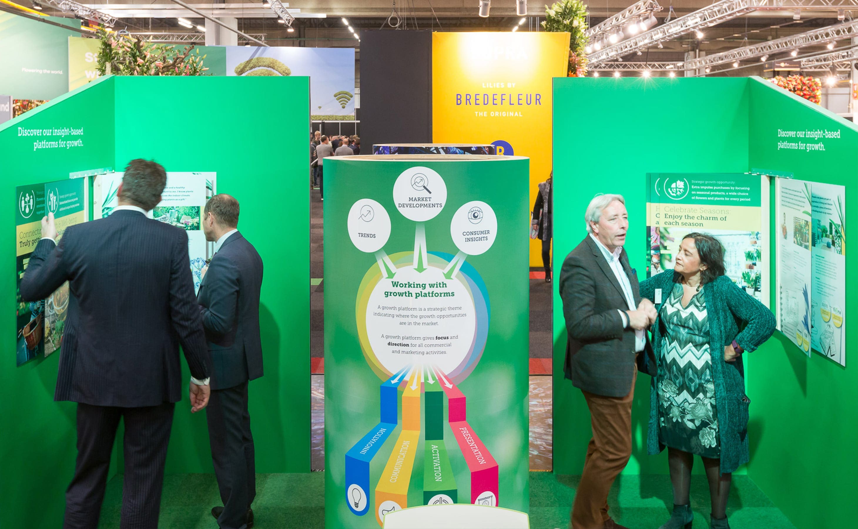 Met de methodiek van groeiplatformen, strategische thema’s voor groeikansen in de markt, was Royal Flora Holland op ons aanraden al een tijd terug aan de slag gegaan. Tijdens de Trade Fair in Aalsmeer was het tijd om het woord te verspreiden. Een probleem: het is niet echt een sexy onderwerp op een beurs vol bloemen en planten. Tijd om de bloemetjes buiten te zetten met een interactieve beursstand!
