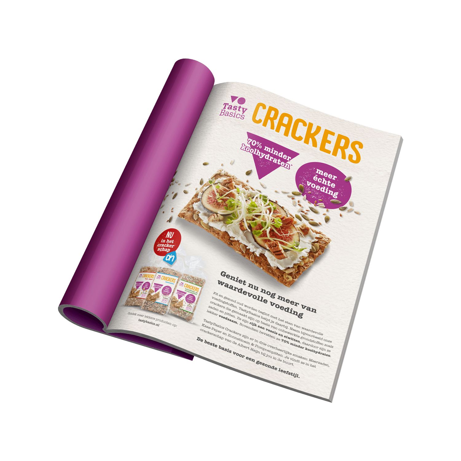 Koolhydraatrijke producten van grote merken met veel marketinggeld voeren de boventoon in het supermarktschap, ‘verantwoord eten’ is een trend en de consument ziet door de bomen het bos niet meer. Wij gingen aan de slag met merkrelevantie en merkidentiteit. Om relevant te zijn als merk moet je mensen helpen om specifieke doelen te bereiken. Wat bleek? Afvallen, omgaan met suikerziekte en je fit voelen zijn redenen om TastyBasics-producten te kopen. Deze en meer psychologische (impliciete) doelen vormden de basis voor ons creatieve voorstel.