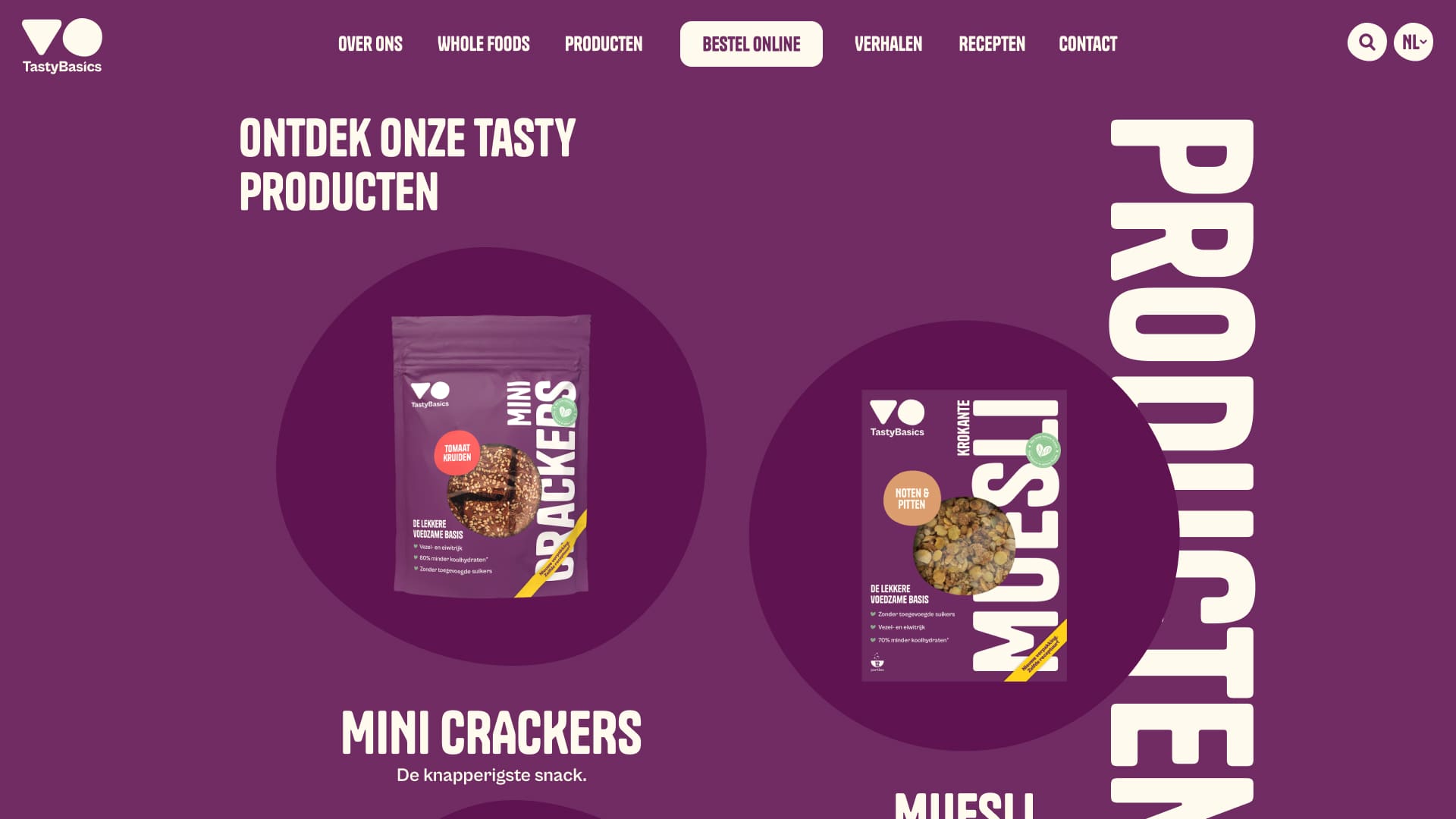 het voedingsaanbod in de supermarkt renoveren door écht voedzame voeding. Daarmee ervoor zorgen dat iedereen zich lekker, fit en gezond voelt. Vandaag en in de toekomst. Of wij misschien konden helpen? Challenge accepted! Van merkpositionering tot visuele identiteit, webdesign en copy: onze specialisten zorgden ervoor dat niemand meer om TastyBasics heen kan.