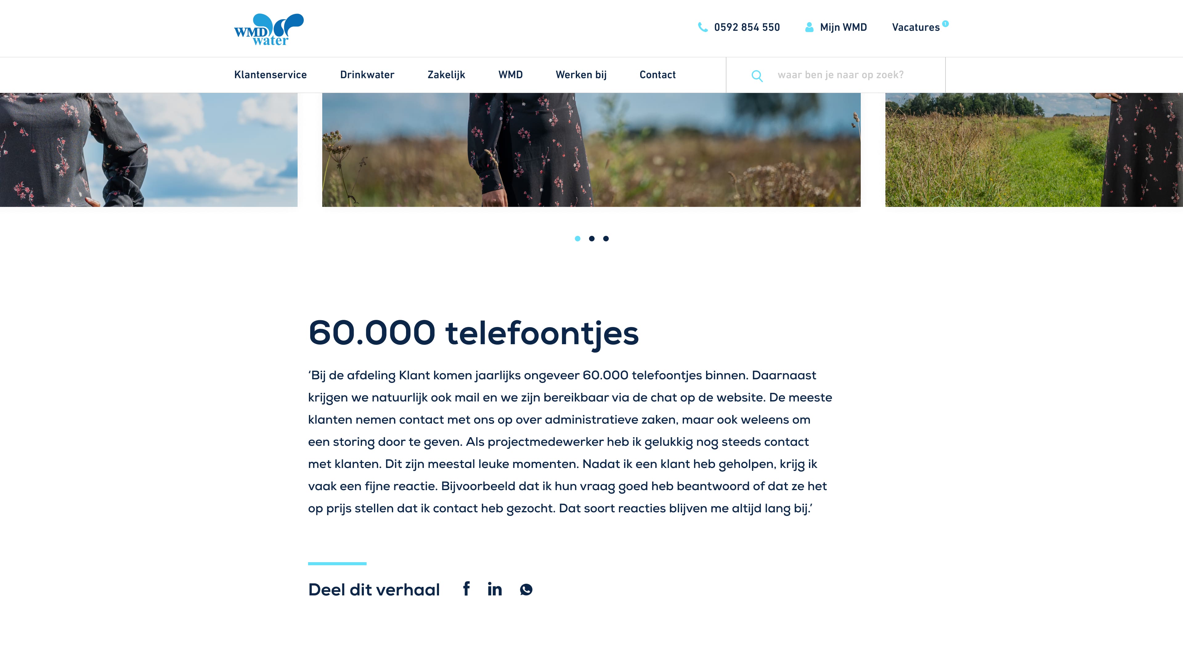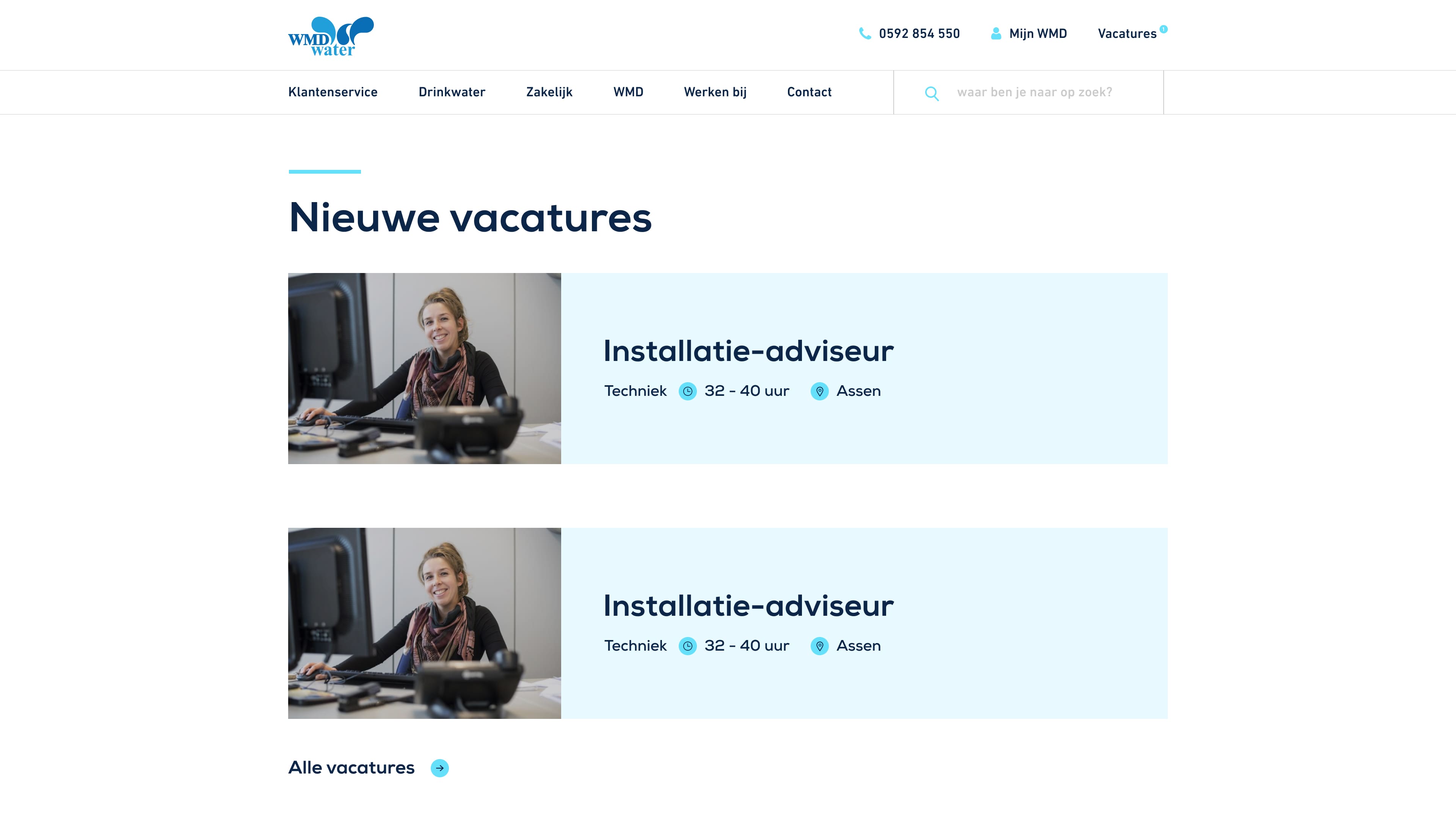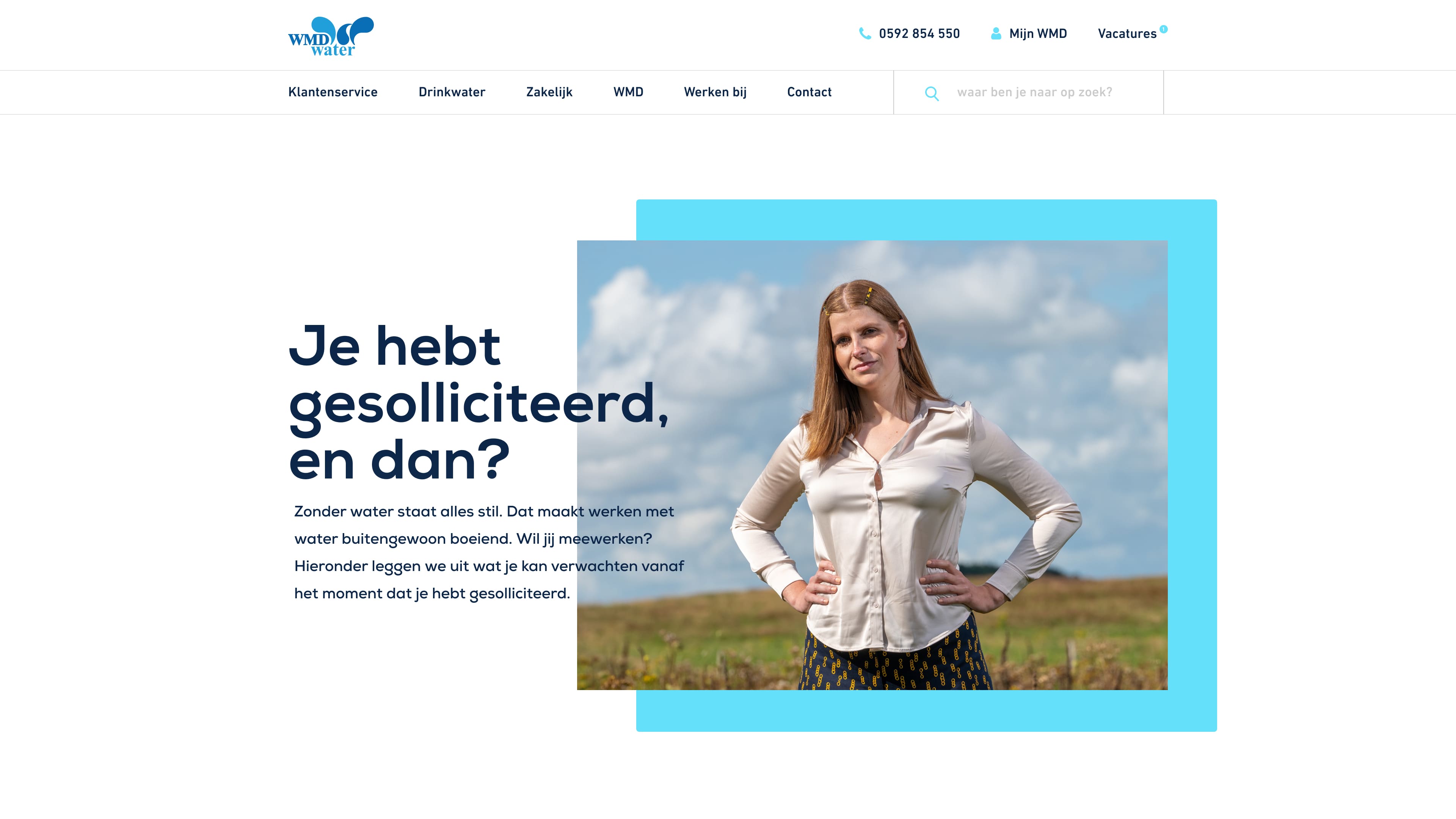 Het water maken van WMD gaat nog altijd door, net zoals onze arbeidsmarktcampagne. Twee jaar na die eerste sessie zetten we nog altijd pakkende vacatures met de portretten en verhalen van watermakers online, waarmee nieuwe collega’s blijven binnenstromen – en daardoor ook het water in de huizen van alle Drenten.